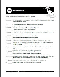 Weather and Seasons Worksheets | Turtle Diary Weather Worksheets. There's so much more to learning about the seasons than rain, sun, and snow. Delve deeper into seasonal detail with your kids using Turtle Diary's weather worksheets. The weather and season worksheets help your child connect holidays and types of clothing with their corresponding season. Don't wait until autumn to make you ... Weather and Season Quizzes | Turtle Diary Weather and Season Science Quiz for Kids. Don't limit your child's understanding of weather and seasons to sun and snow, introduce them to the reality of nature using our comprehensive science practice tools. Your kid will fascinate you with a surplus of knowledge relating to spring, summer, autumn, and winter after he or she uses our online ... Weather Worksheets and Weather Quizzes - Free Math worksheets, Free ... Storm Chasers/Severe Weather Quiz. Climate and Climate Change Quiz. Oceanography Quiz. Tropical Weather Quiz. Hurricanes Quiz. Climatology Quiz. Tornadoes Quiz. Climate vs. Weather. Physical Weathering Examples. Weather Science Test Printable (6th-12th Grade) - TeacherVision Test: Weather. Written-response and multiple-choice questions in this weather exam are used to test students' knowledge and understanding of cloud formation, humidity, air masses, fronts, precipitation, air pressure, and meteorology. This printable also asks students to interpret a weather map.