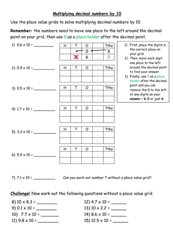 Search Printable 5th Grade Multiplying Decimal Puzzles & Sudoku Worksheets Browse Printable 5th Grade Multiplying Decimal Puzzles & Sudoku Worksheets. Award winning educational materials designed to help kids succeed. Start for free now! Multiplying and Dividing Decimals by 10 (A) - Math-Drills Students can use math worksheets to master a math skill through practice, in a study group or for peer tutoring. Use the buttons below to print, open, or download the PDF version of the Multiplying and Dividing Decimals by 10 (A) math worksheet. The size of the PDF file is 21180 bytes.