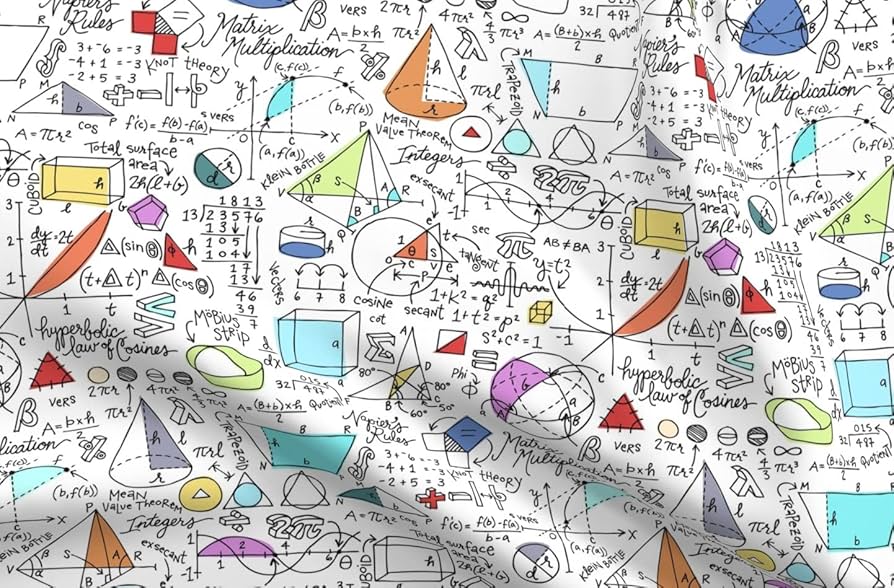 Spoonflower Fabric - Math, Geometry, Count, Multi Color, White, Black, Mathematics, Printed on Petal Signature Cotton Fabric Fat Quarter - Sewing ...